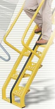 Alternating Tread-Type StairsAlternating tread-type stairs have a series of steps between 50 and 70 degrees from horizontal, attached to a center support rail in an alternating manner so that a user of the stairs never has both feet at the same level at the same time.